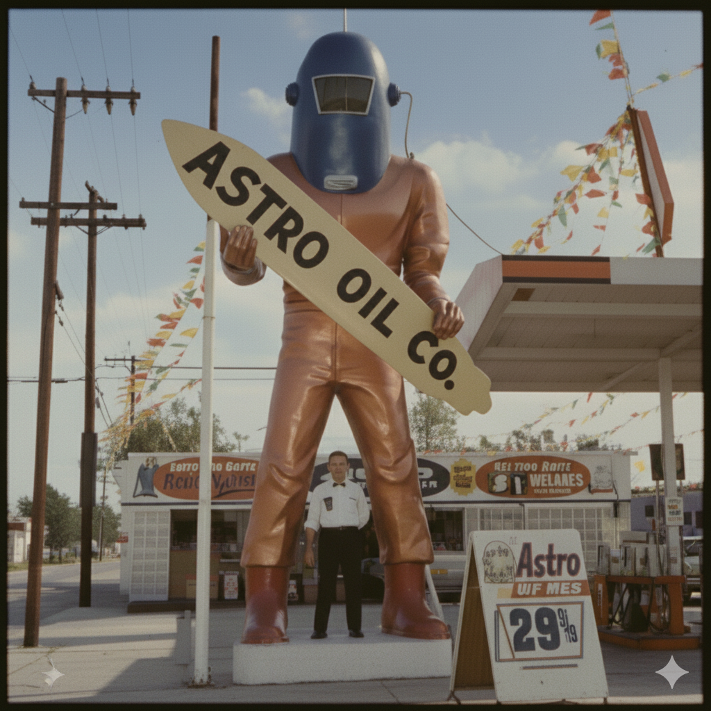 Muffler Men invaded America in the 1960s. Over the next several years they morphed into multiple characters: Cowboys, Chefs, Vikings, Native Americans, and more.