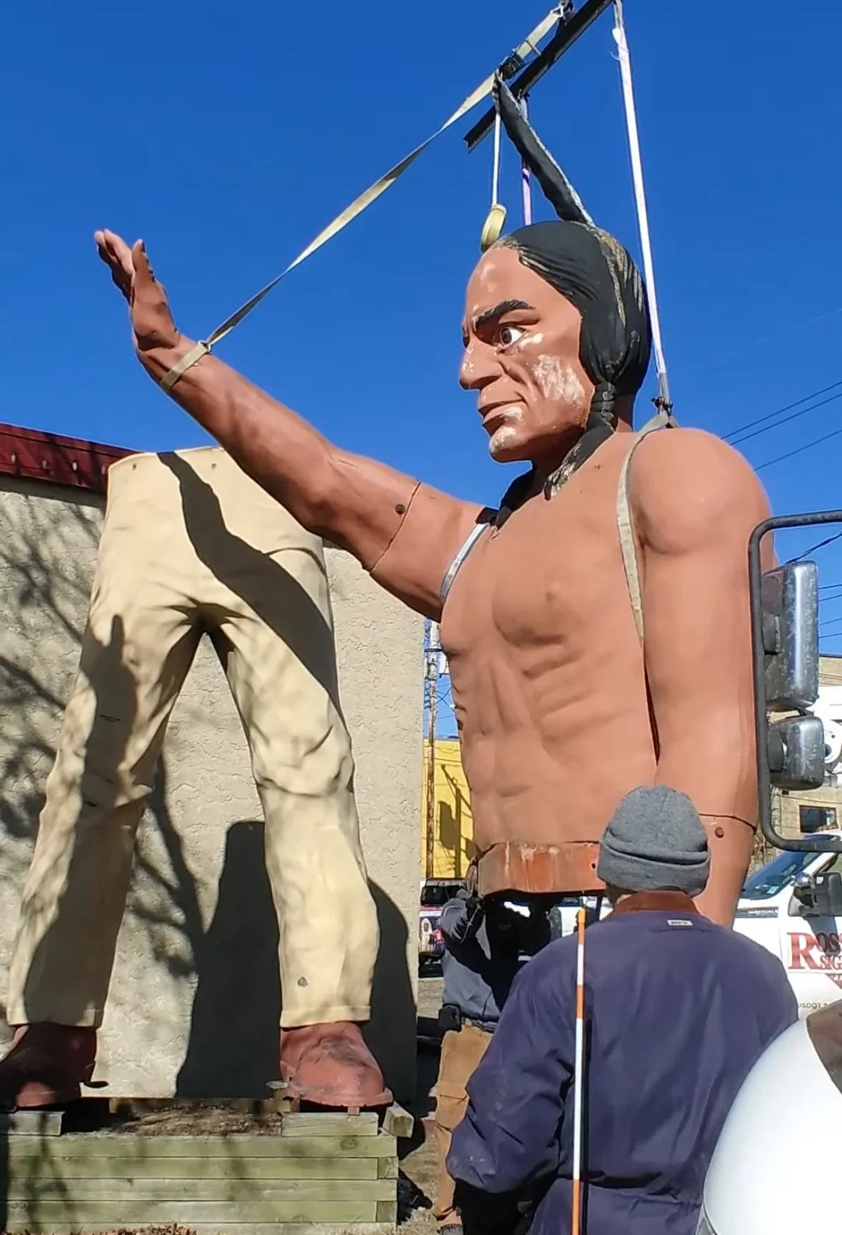 In early 2025 American Giants purchased an Indian Brave Muffler Man from Morell’s Chippewa. The giant had been a landmark do Bemidji for more than 50 years. The giant will receive a partial restoration and will be set up in May 2026 but keeping much of it’s vintage look and history.